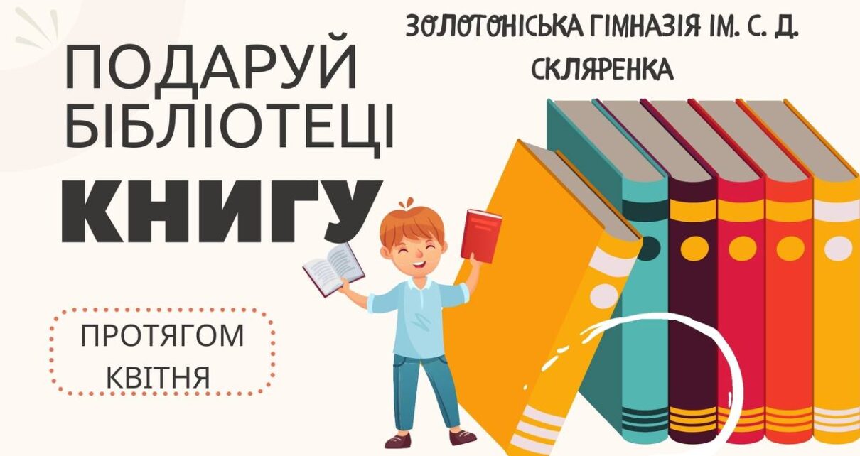 Золотоніська гімназія ім. С. Д. Скляренка запрошує всіх охочих долучитися до благодійної акції «Подаруй книгу бібліотеці».